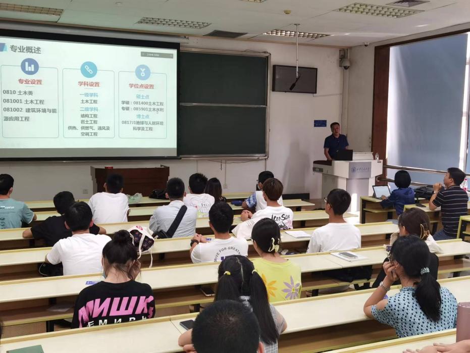 随后建筑学系党支部书记王佳、土木系系主任孙清、环境系系主任张猛分别介绍了三个系所专业培养目标、专业特色、发展历史、师资队伍、科研情况、人才培养社会价值成效以及学科发展前景。王宇鹏老师全面介绍了作为教育部首批、西安交大首个新工科专业大数据与智慧城市方向的培养内涵、培养特色、培养条件及发展期望。使全体新生和家长对人居学院各学科有了更加直观而详实的了解。