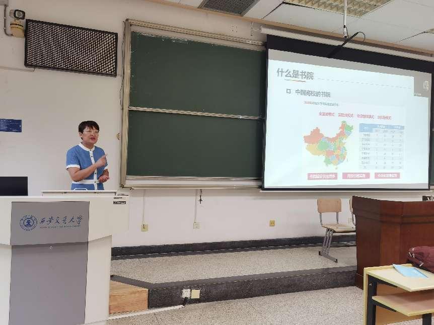王琦主任以新起点、新气象为题作报告。她从现代书院制、我国高校书院发展脉络及西安交大的书院制育人特色等方面全面介绍了交大书院育人体系以及文治书院的育人理念。并从心态调整、精神养成、学习习惯塑造、在集体中成长、重新定位目标等方面引导新生适应大学生活。