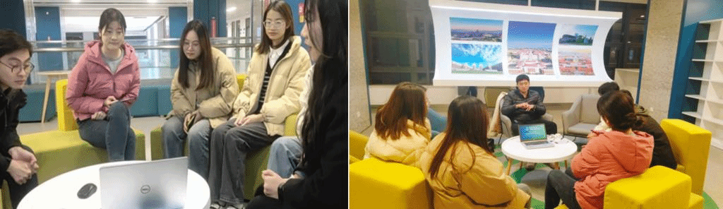 随后,建筑学和土木水利专业同学分别从宏观和微观出发,以城市规划和建筑技术角度讨论了学科中的双碳前沿研究以及减碳方式,展示了碳排放测算方法、预测模型、储热、可再生能源利用等节能减排技术。