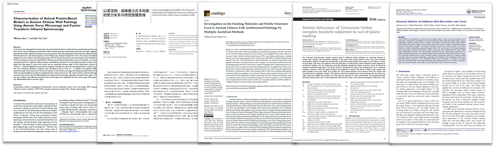 杨淑燕教授2019年加入西安交大后组建了“历史建筑保护研究”课题组,团队成员专业背景涵盖建筑学、景观园林、材料科学与土木工程等方向,科研方向除了传统木构力学研究之外,已逐步拓展至传统建筑材料与彩塑壁画保护、土遗址生态保护及木材防火性能等研究。至今主持国家外国专家项目 1 项、东亚与东盟及其成员国国际合作项目2项、纵向与省级项目2项、境内外横向科研项目 20 余项以及参与校企与政府共同合作的文物保护修缮工程项目2项;发表国内外学术论文30余篇,英文撰写学术书籍章节3部,编译、审校中英文著作 2 部;参加编写国家林业标准2部;获得东亚建筑史国际会议“青年学者优秀论文奖”。