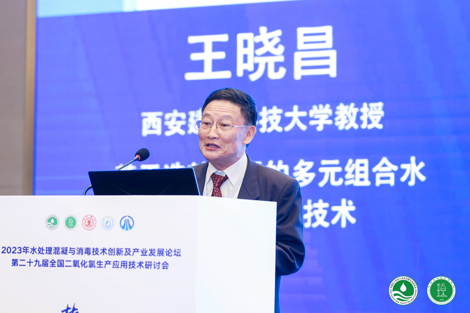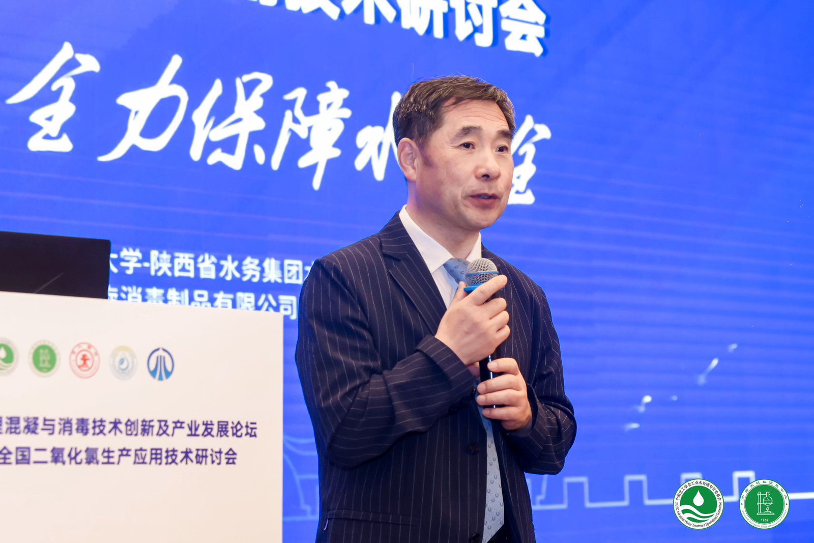 本届会议以“技术创新驱动发展全力保障水安全”为主题,设置了大会特邀报告,混凝、消毒技术及二氧化氯生产应用领域3大专题分会场,专家-企业-用户三方圆桌会议等系列特色活动,并同期举办了第二十九届全国二氧化氯生产应用技术研讨会。邀请众多知名学者、行业专家围绕混凝与消毒领域前沿动态、先进技术、理论创新、推广应用等方面的问题开展深入研讨。中国工程院院士侯立安、马军,非洲科学院院士李风亭,英国杰出人才计划入选者、西安建筑科技大学教授王晓昌,山东大学特聘教授高宝玉,国家自然科学基金杰出青年基金获得者赵华章、王东升,中国疾病预防控制中心研究员应波,中国化工学会副秘书长宫艳玲,陕西省水务集团有限公司党委委员、副总经理赵杨,西安交通大学人居学院党委书记杨鹏等专家领导参加会议。