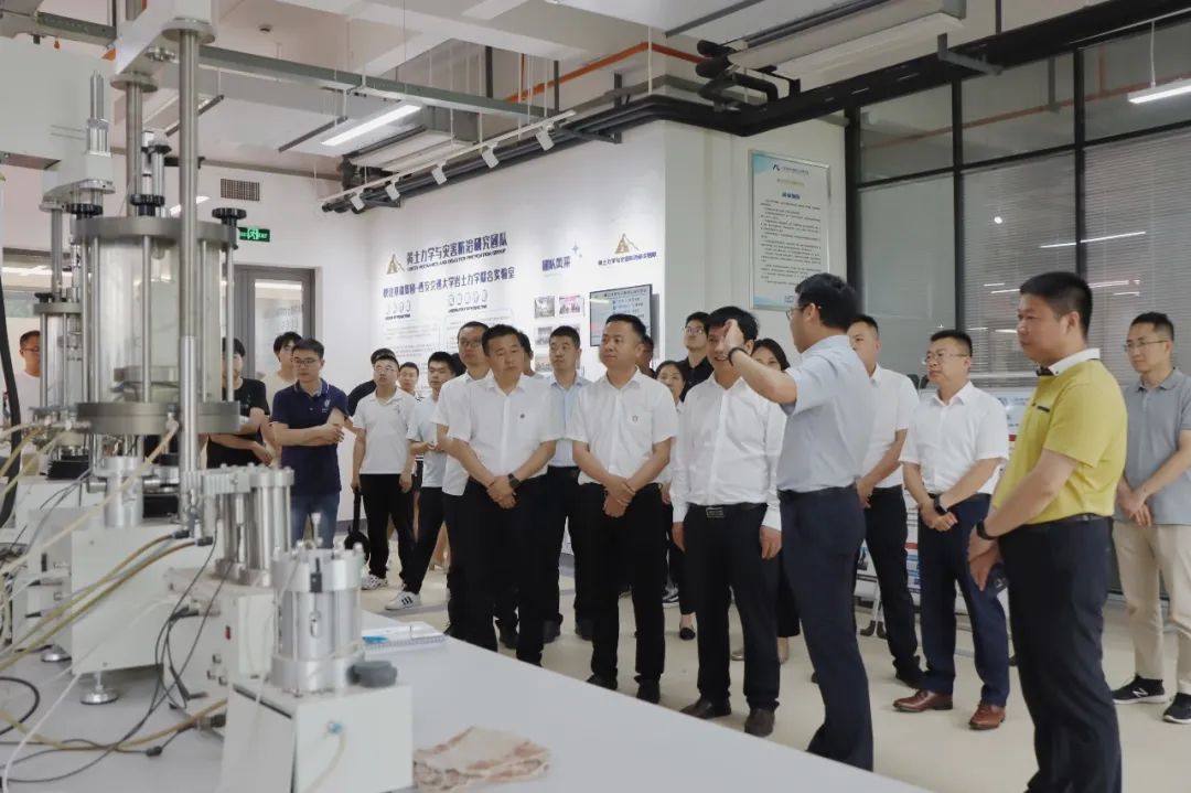 揭牌仪式后,与会人员参观了岩土力学联合实验室,许领教授介绍了联合实验室仪器的建设情况。