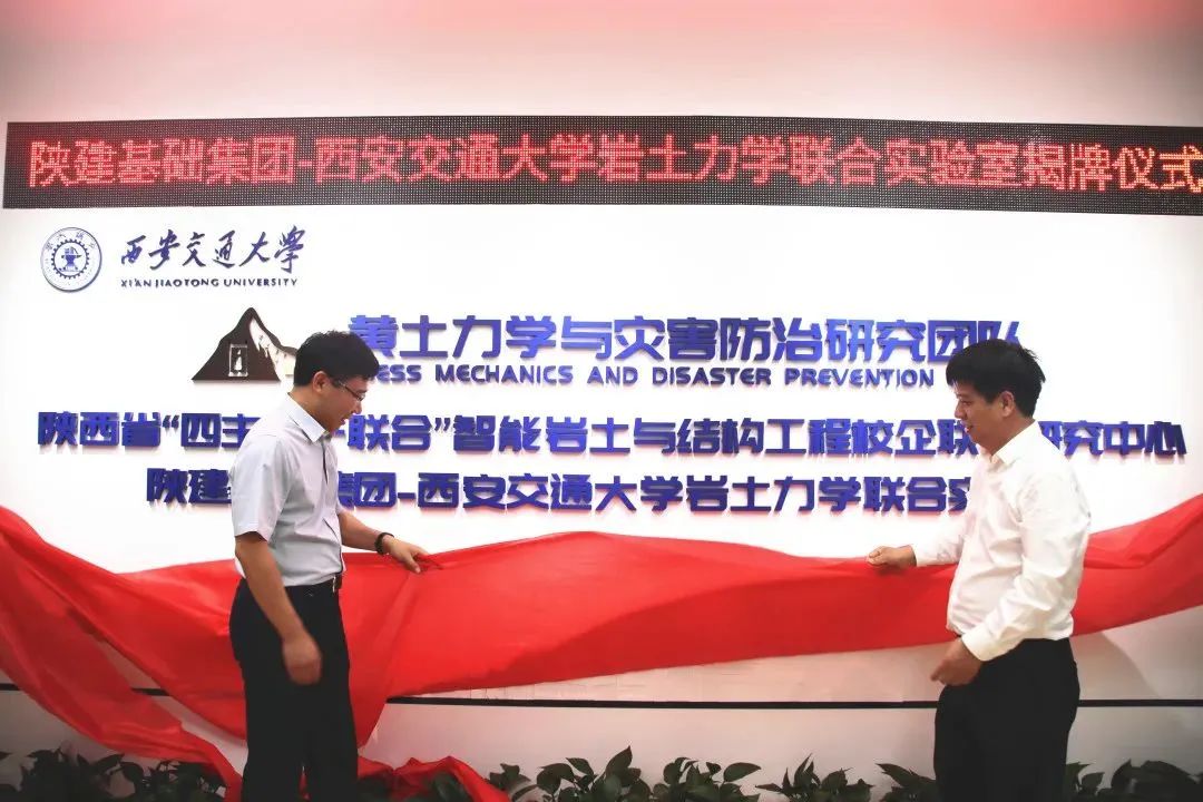 6月12日下午,西安交通大学人居学院与陕建基础集团在西安交通大学创新港校区举行岩土力学联合实验室揭牌仪式。陕建基础集团党委书记、董事长牛新会,党委副书记、总经理王伟伟,党委委员、副总经理贾飞,秦创原未来城市建设与管理创新联合研究中心秘书长、陕建科技公司总经理田鹏刚,西安交通大学人居学院常务副院长许领以及陕建基础集团、西安交大人居学院其它相关人员出席揭牌仪式。会议由西安交通大学人居学院院长助理陆世锋主持。