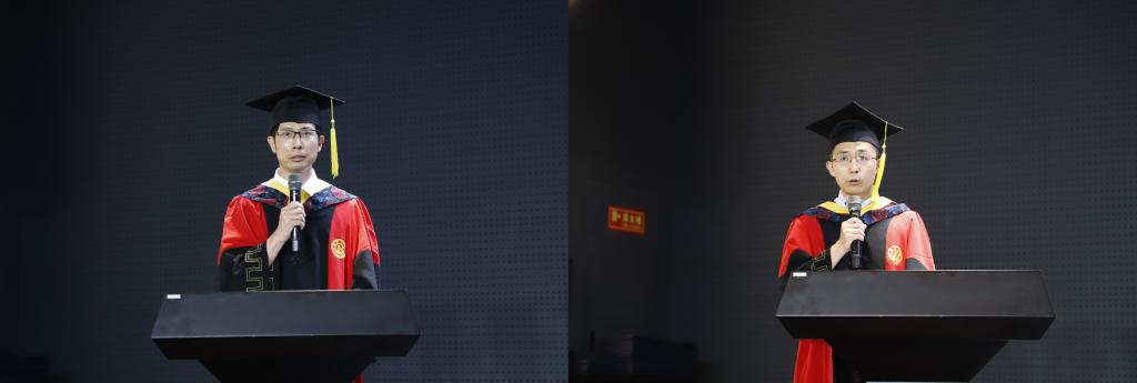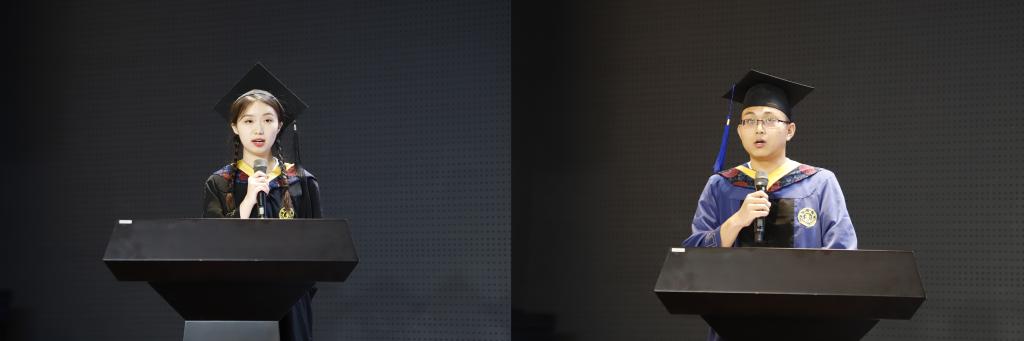 毕业生刘雨荷代表全体本科毕业生发言。她代表毕业生对学校、学院以及广大师生表示感谢,表示在今后的学习科研中,将永葆交大底色,到党和人民需要的地方发光发热。研究生代表贾开在发言中表示,身为交大学子,应勇于担负使命,无论走到哪里,都要时刻记得在交大成长的点点滴滴,把学识用于实践,为人民幸福、国家强盛、民族复兴的伟大事业作出贡献!