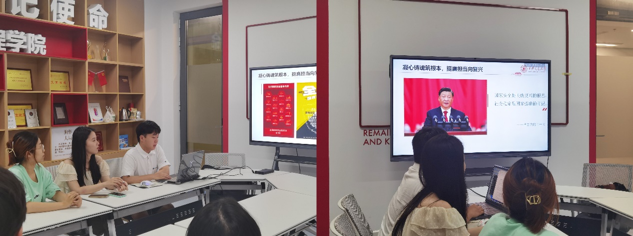 “党员轮流讲党课”活动中,支部组织委员郭筱洋以《凝心铸魂筑根本,挺膺担当向复兴》为题开展国家安全主题宣讲。宣讲通过隐蔽战线工作者孙彪同志抛却生死、坚守职责、义无反顾奔赴敌人心脏的故事,让全体成员充分认识到了国家安全的重要性,国家安全教育与每个人息息相关,人民的安全就是最大的安全。