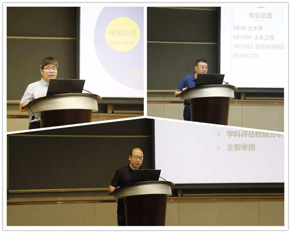 随后,土木工程学科、环境科学与工程学科、建筑学学科负责人分别汇报了本学科具体发展规划。总结现有成果,深刻剖析了与对标院校差距,并提出应对具体举措。