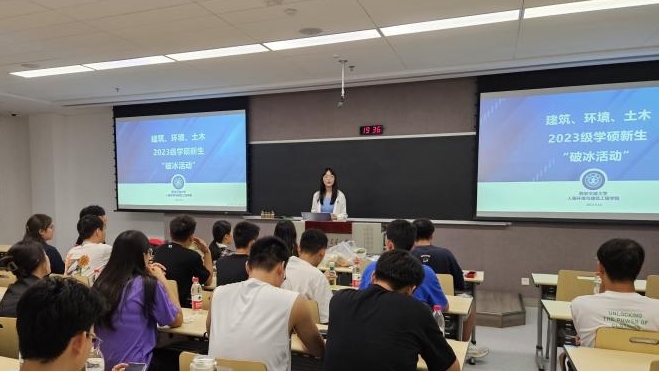 9月14日晚,人居学院2023级学硕班破冰活动于创新港校区2-6004顺利开展。活动由班级临时负责人曹瑞、王碧博、李珅策划及主持,环境、土木、建筑三个专业全体新生参加。