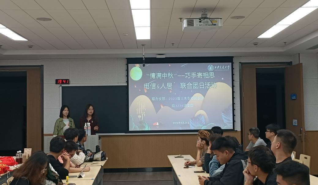 皓月当空,明灯四起,又是一年中秋到,又是一轮相聚时。为增强文化自信,坚定中华文化认同感,践行绿色低碳环保理念,2023年9月29日晚,人居学院2023级土木专硕团支部与电信学部硕3236团支部在创新港校区泓理楼4-6028教室联合举办“情满中秋”——中秋巧手寄相思活动。在支部组织下,参与活动的同学们通过观看视频、知识问答、写信、折纸等一系列活动,对话古今,为心中牵挂的家人、朋友和老师寄予最情深意切的思念。在感悟历史文化内涵的同时,培养开拓创新精神,传承历史,延续未来。