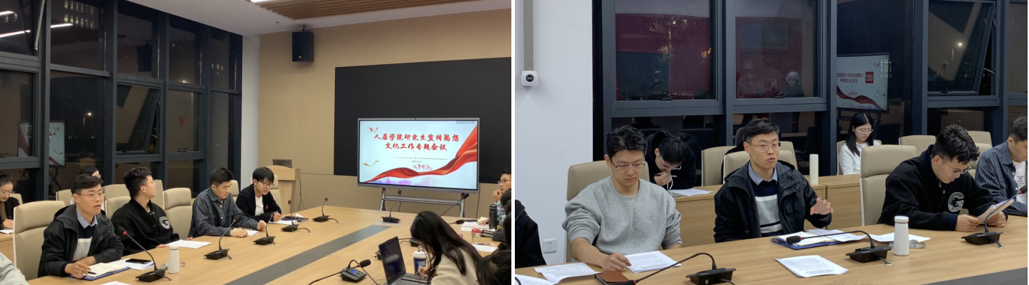近日,习近平总书记对宣传思想文化工作作出重要指示,明确要求“着力加强党对宣传思想文化工作的领导”。全国宣传思想文化工作会议首次提出习近平文化思想,并对学习贯彻习近平文化思想作出具体部署。10月19日晚,人居学院于创新港7号楼召开研究生宣传思想文化工作专题会议。人居学院辅导员薛同宣,人居学院兼职辅导员,2022级、2023级研究生骨干参会。会议由兼职辅导员陈思佳主持。