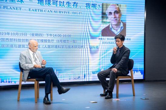 授予仪式之后,Hashem Akbari教授以“Me and My Planet: Earth will survive; do we?” 为题进行学术报告,通过阐述气候变化的内在原因及人类对地球气候的影响等呼吁创造可持续发展的城市形态,引起与会听众的热烈反响。讲座结束后,Hashem Akbari教授与我校师生就城市环境问题缓解、未来城市低碳发展等问题开展了讨论。