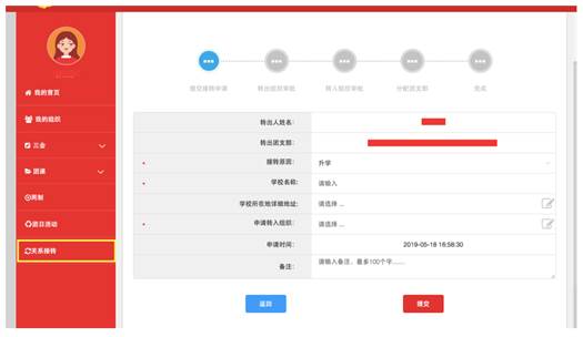 ✓ 毕业后参军入伍的学生团员:选择“特殊单位团组织”后,由省级团组织负责审核。毕业后到涉密单位工作的学生团员的转接参照此类型处理。