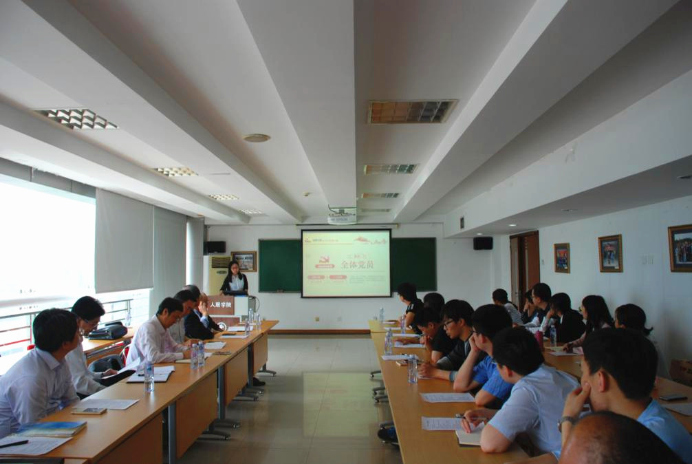 赵军武常委向大家分享了自己的学习体会,通过“两学一做”学习做合格党员,思考什么是合格党员。通过向大家提问“第一,在做的各位同学做到了吗?第二,这样做到就够了吗?”引申到从目前国家的定位,学校的定位和个人马上走向社会的定位向大家分别讲述了国家的发展趋势和教育布局,讲述了学校向世界一流大学发展过程中的内外环境和内涵发展的变化,讲述了科技创新港的发展和建设、丝路联盟等学校一系列重要举措。就同学们个人定位谈了交大研究生步入社会后的定位问题,赵军武常委讲到,交大毕业生的社会责任应是引领社会文化、引领社会进步、引领社会先进的,交大学生以后都是社会的精英,标准就应是高于别人的,大家的精神状态、精神境界和人生理想就是国家的未来和希望,这就是个人定位。