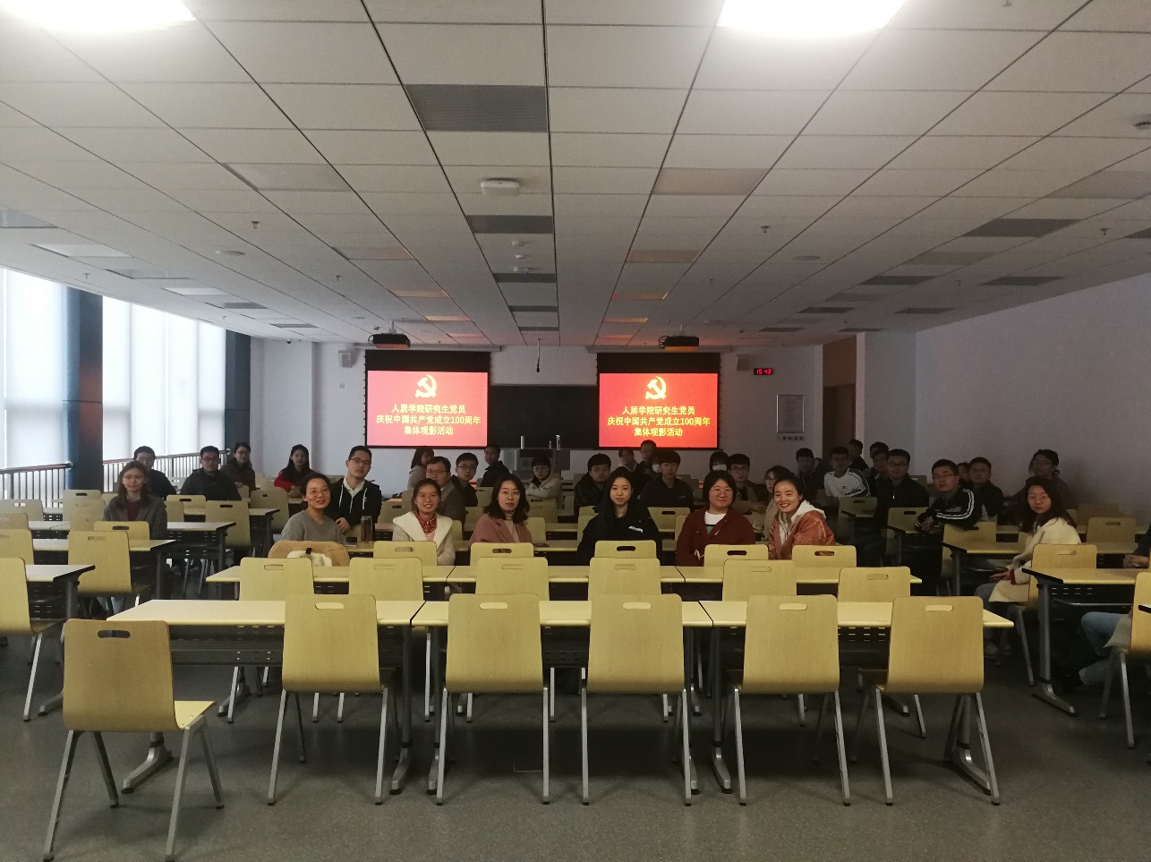 2021年3月19日,环境科学党支部组织庆祝建党100周年观影活动,教师党小组和博士生党小组观看了电影《古田军号》和《第一大案》。