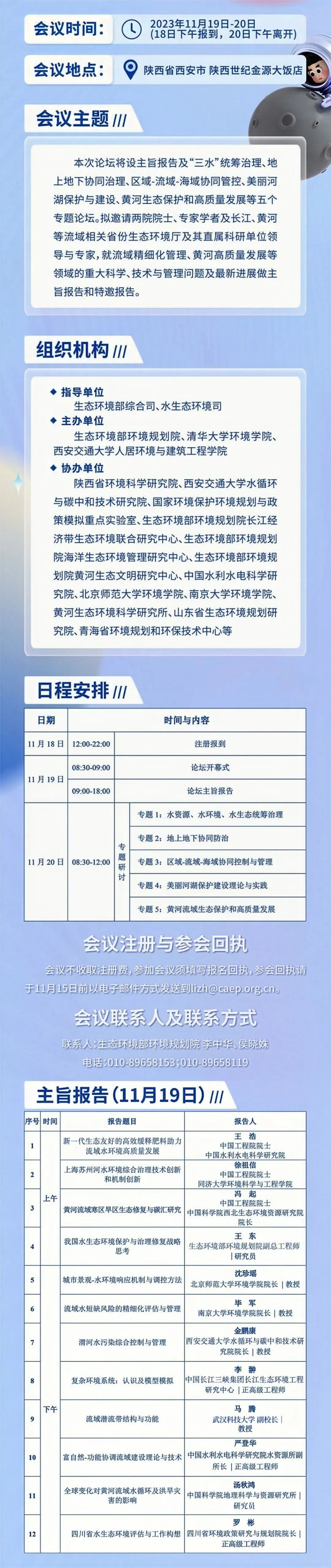 为贯彻落实美丽中国建设、人与自然和谐共生的现代化建设要求,大力推进美丽河湖保护与建设,深入推动黄河流域生态保护和高质量发展,由生态环境部综合司、水生态环境司指导,生态环境部环境规划院、清华大学环境学院、西安交通大学人居环境与建筑工程学院共同主办,西安交通大学水循环与碳中和技术研究院、污水处理与资源化创新团队协办的第六届中国流域水质目标精细化管理暨美丽河湖保护与建设研讨会拟定于2023年11月19-20日在陕西西安召开。本次研讨会旨在全面展示近年来广大学者及从业人员在流域水生态环境保护科学、技术与管理方面的最新研究与实践进展,深入探讨流域水生态环境保护所面临的机遇与挑战,同时进一步增进广大学者和管理人员之间的了解与合作。在此,诚垫邀请和热忧欢迎流域水生态环境保护领域广大学者专家及从业人员莅临!