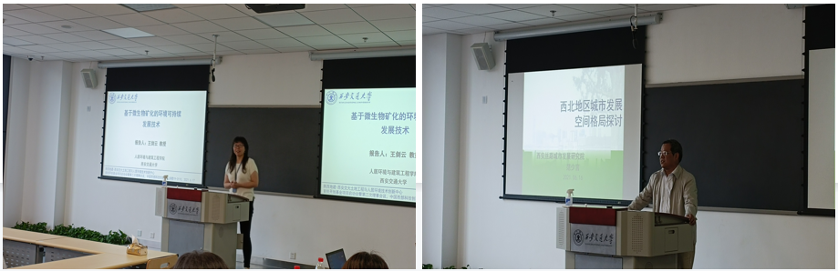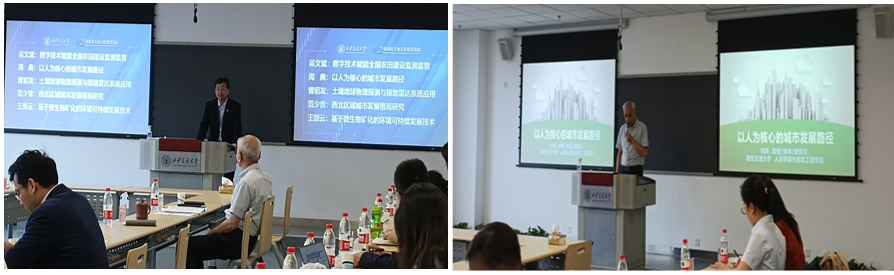 学术报告会上,西安交通大学人居学院教授周典作题为“以人为核心的城市发展路径“的学术报告,并提到作为人居学院发展宗旨的学科交叉,对课题的研究发展提供了诸多帮助。中国农业科学院农业资源与农业区划研究所副所长吴文斌提到粮食安全问题是国家的根本,他从怎么保证粮食安全问题出发,作题为“数字技术赋能全国农田建设监测监管”的学术报告。吉林大学教授曾昭发围绕土壤地球物理探测意义,探测方法,以及探地雷达探测的应用三方面作题为“土壤地球物理探测与探地雷达系统应用”的学术报告。西安丝路城市发展研究院院长范少言作题为“西北区域城市发展格局研究“的学术报告,探究黄土高原地区乡村空间如何转型发展。西安交通大学人居学院教授王剑云报告题为“基于微生物矿化的环境可持续发展技术”,展示了微生物矿化与环境建材学科交叉的潜力。