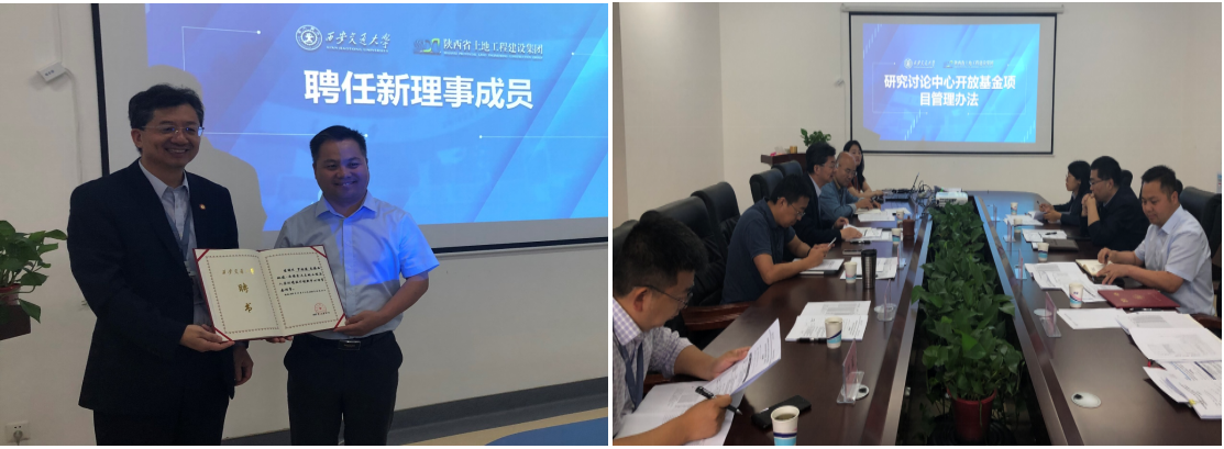中心第二次理事会上,陕西地建集团-西安交大土地工程与人居环境技术创新中心聘任陕西地建集团总工程师罗林涛为中心新理事成员,中心主任、中心理事会副理事长顾兆林为罗林涛理事颁发聘书。理事会成员们对中心开放基金管理办法进行研讨,希望创新中心开放基金项目的管理更加科学化与规范化。中心主任顾兆林对首批开放基金项目情况及经费收支明细等进行了详细汇报,并阐述了2021年中心工作计划。理事们针对同等学历博士招生及培养以及人居学院在建的7号楼建设与碳中和政策的结合等问题进行研究讨论,希望未来能更加深入的合作。