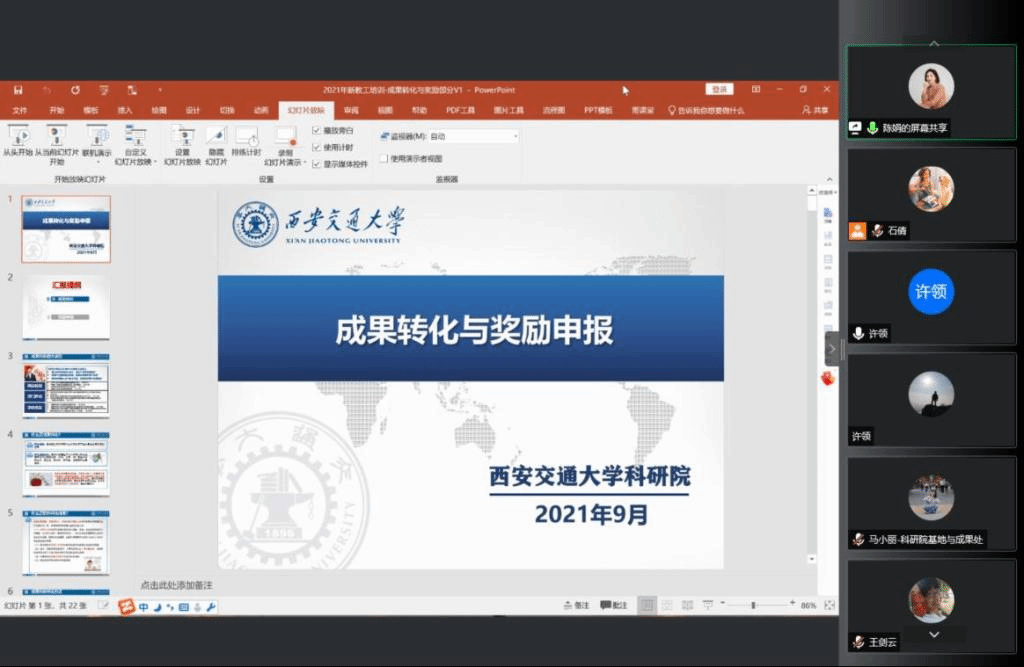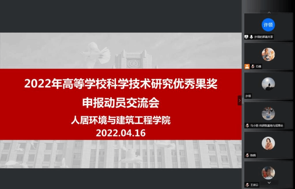 4月16日上午,人居学院线上召开教育部成果奖申报交流会,学院邀请西安交通大学科研院基地与成果处陈娟副处长、刘兴华老师、马小丽老师参加本次交流会。会议由人居学院科研副院长许领主持,学院领导、系所负责人以及各团队教师代表等参加了本次会议。