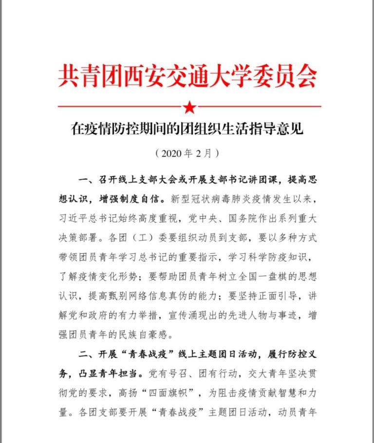 会议共分为四项内容。第一项由团支部书记带领大家学习习近平总书记关于疫情防控的重要指示精神和《关于坚持党的领导,全团动员,在防控疫情狙击战中充分发挥共青团生力军和突击队作用的通知》《交大五万余名师生同上一堂课!帮你划重点!》等重要文件。