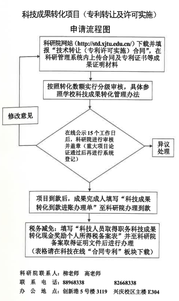 【基地与成果处】科技成果转化项目(专利转让与许可实施)申请流程图