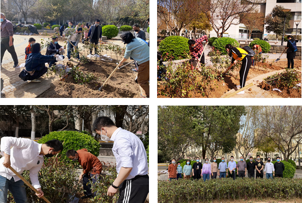 在吴一平、孟祥兆两位党支部书记带领下,支部党员早早来到兴庆校区休闲广场,大家拿树苗、挖坑、培土、浇水,齐心协力,共同栽种下200多颗石楠灌木。看到绿油油的灌木丛一派生机勃勃,纷纷表示参加义务植树非常有意义,既锻炼了身体也美化了环境,同时倡议大家做科学研究的同时做好环保公益活动,让环境保护和可持续发展深入人心。