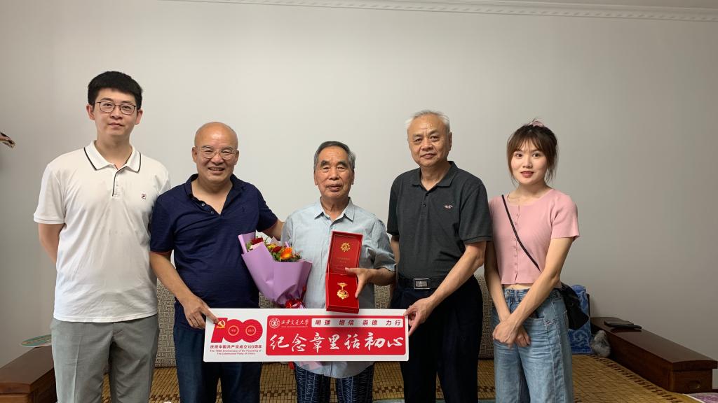 在中国共产党百年华诞,七一建党节来临之际,人居学院党政领导携教师、学生党员及学生骨干共同走访慰问老党员及退休老教授。向老党员们颁发“光荣在党50年”纪念章,送去党和学院的温暖与关怀,致以最崇高的敬意,聆听老党员们入党初心与奋斗经历。