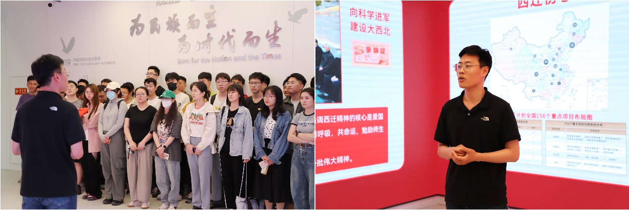 在数字展厅参观过程中,数字展厅讲解员、学院兼职辅导员曹瑞为同学们进行了细致深入的讲解,带领同学们充分了解了交大西迁的校史校情以及创新港的建设理念、历史使命、发展目标,同时也对老一辈西迁人“向科学进军、建设大西北”的初心以及“听党指挥跟党走”的西迁精神有了更深刻的体会。曹瑞谈到,人居学子在乡村振兴、规划建设、生态环保等领域大有可为,大家要继续传承弘扬西迁精神,主动融入校地企一体联动、产学研深度融合的新氛围和新格局,在青春赛道上跑出新时代人居青年的更好成绩。