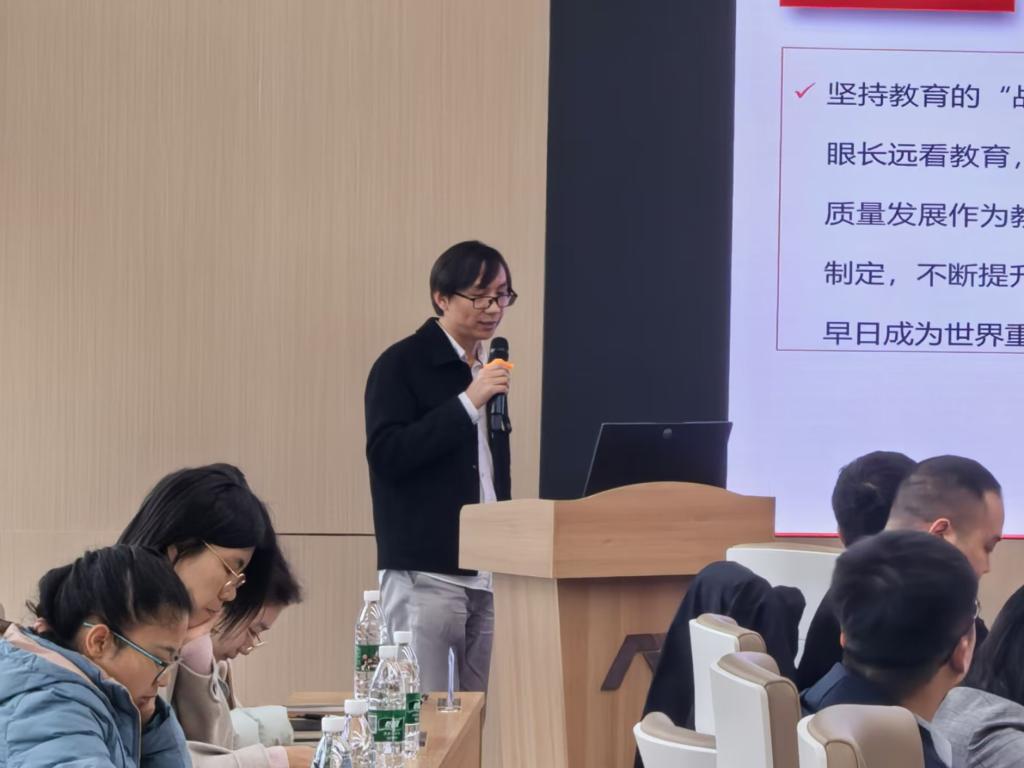 土木工程系党支部殷尧同志带领全体与会成员从什么是教育强国、如何实现教育强国、教育的三大属性与六力等方面共同学习了2024年全国教育大会精神。