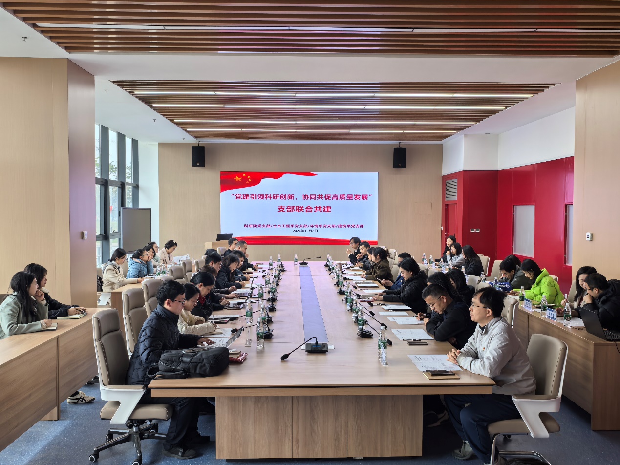为学习贯彻党的二十届三中全会精神及全国教育大会精神,进一步推进党建与科研深度融合,以高质量党建促进高水平科技创新。12月5日,人居学院土木工程系、环境系、建筑系党支部与科研院党支部联合举办“党建引领科研创新,协同共促高质量发展”支部联合共建活动。科研院副院长、党支部副书记王庆琳,人居学院党委书记杨鹏、副院长张硕英以及各党支部党员同志参加活动。活动由土木工程系党支部书记徐晗主持。