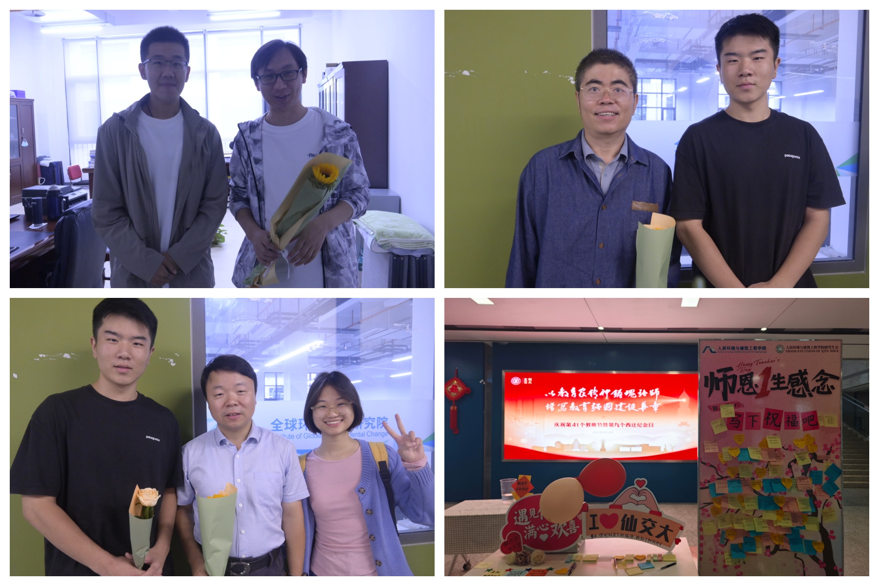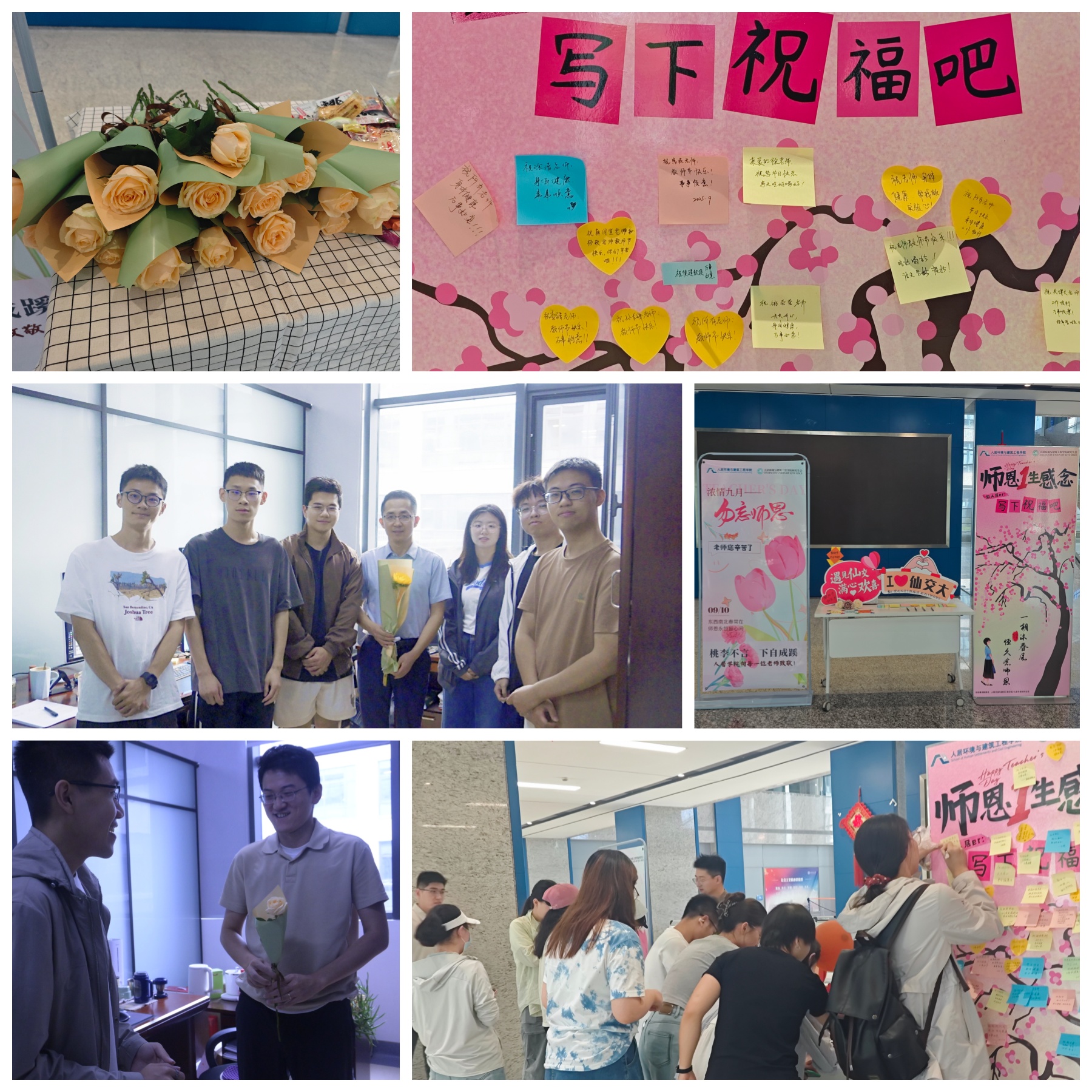 教师节当天,创新港泓润楼前洋溢着浓厚的节日气氛。学院组织举行“感念师恩 育梦成光”活动,同学们在展板分享老师育人故事、写下对老师的祝福,为陆续到来的老师们送上鲜花。“老师,您辛苦了!”“老师,节日快乐”一句句真挚的祝福,让微雨的秋日,温暖动人。学院还发起“为教师亮灯”行动,源居楼楼宇电子屏、学院网站和微信公众号滚动展示教师节主题海报、祝福语和祝福视频,营造出了浓厚的节日氛围。