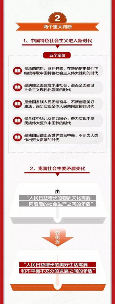 十九大重要论断:①中国特色社会主义进入新时代;②新时代中国特色社会主义思想;③我国社会主要矛盾;④开启全面建设社会主义现代化国家新征程。