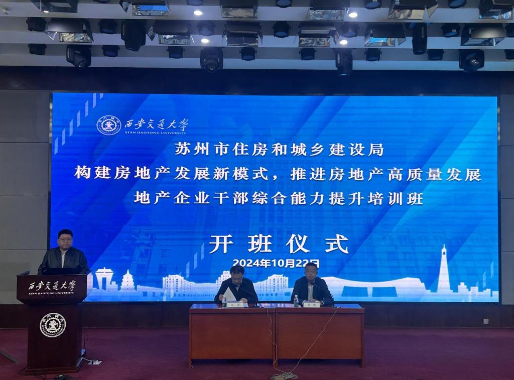10 月 22 日,苏州市住建局构建房地产发展新模式干部培训班在西安交通大学兴庆校区顺利开班。西安交通大学人居学院党委书记杨鹏,苏州住建局副局长肖军出席开班式。