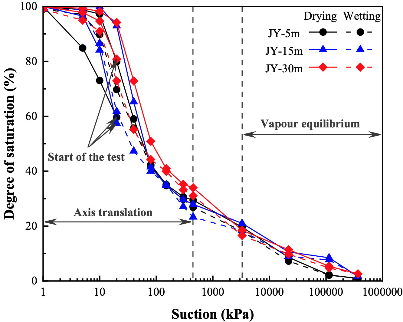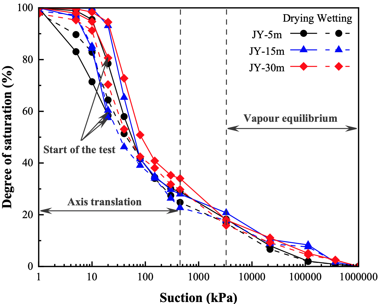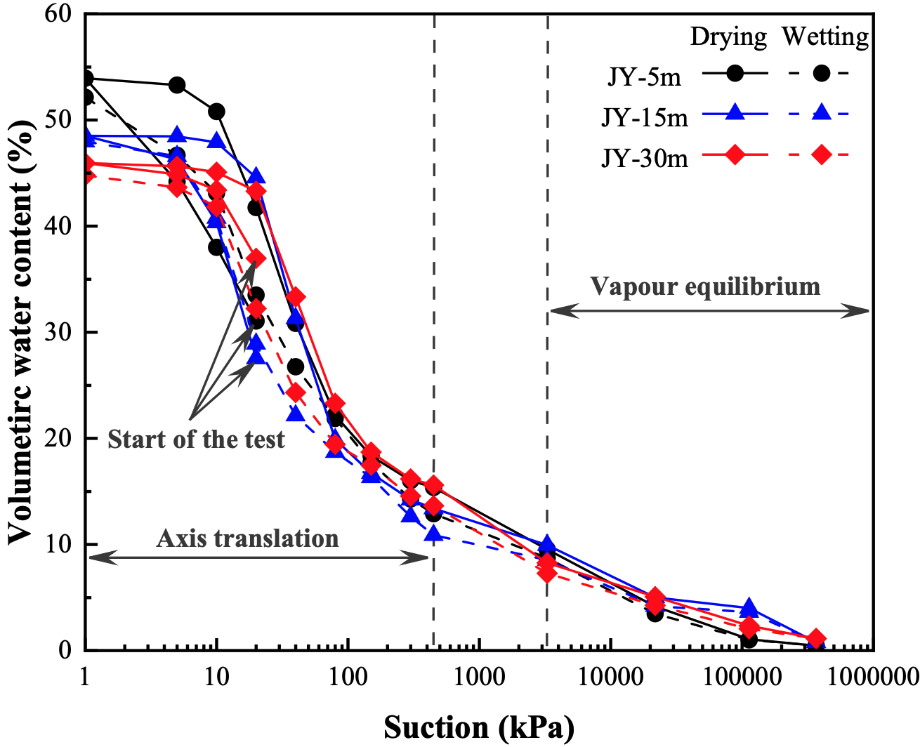 图1 干湿循环下被测土体的持水行为