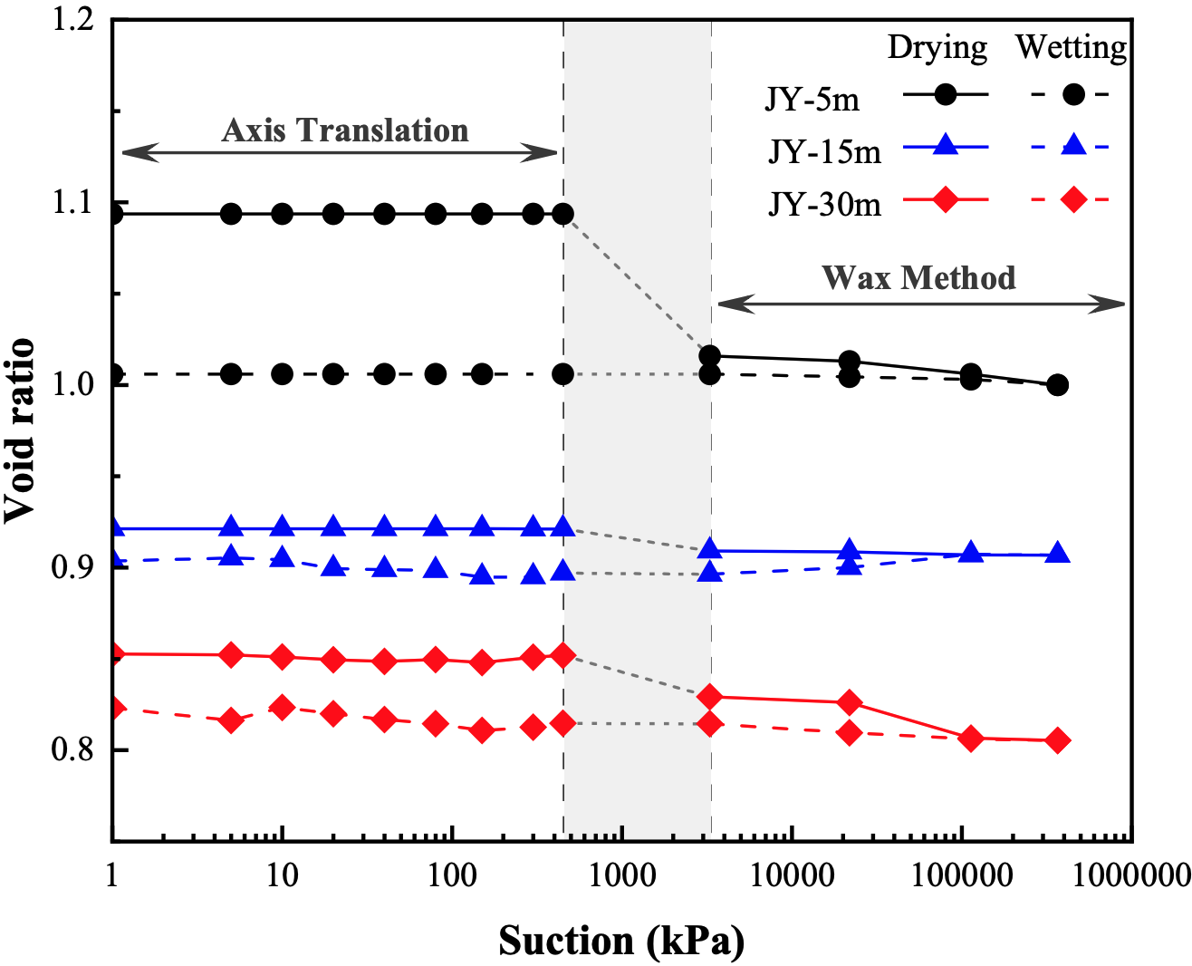 野外条件下的黄土在不同沉积深度下会经历不同的应力历史和水力历史,而不同的应力、水力历史会导致土体持水性质及滞回特性的差异。本研究选取沉积深度分别为5m、15m以及30m的原状黄土进行了全吸力范围内(1-367.5MPa)的持水曲线实验,并分析了高低吸力下黄土呈现不同滞回特性的机理,还通过扫描电子显微镜实验(SEM)及压汞实验(MIP)体现了土体微观结构的变化。此外还利用四个常用的持水模型来模拟全吸力范围内土体的干燥、湿润曲线,通过详细的模拟结果分析了各模型拟合效果。该研究为黄土持水滞后特性动态演变及相关的微观结构的研究提供了支撑。