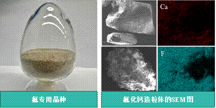 内蒙古某煤矿在其生产过程中会产生的大量含氟废水,资源回收前景可观。但传统化学沉淀法将使用大量药剂造成二次污染,成本较高并造成了资源浪费。对此,团队深入分析了其水中氟离子的存在状态,并设计合成了针对氟离子的核晶造粒专用晶种,分别通过精准投加氯化钙,调节反应pH,优化专用晶种的投加量,使氟离子以氟化钙的形式结晶于专用晶种上,并形成密实的氟化钙核晶造粒体,实现氟离子的高效回收。