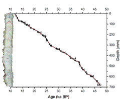 中国季风区石笋δ18O记录作为夏季风强度的重要指标,对研究过去气候环境变化具有重要的科学意义。目前,关于末次冰期千年尺度气候突变的Heinrich事件期间,中国石笋δ18O记录主要集中在中部和西南部,东南地区的相关记录仍较为匮乏。这在一定程度上限制了我们对这些突变气候事件期间中国季风降水变化的时空分布及其机制的全面理解。为此,本研究利用湖北省东南部阴地洞石笋YXG01的42个U-Th年龄(图1)和698个δ18O、δ13C同位素数据,重建了47-12ka BP期间高分辨率水文气候变化记录,揭示了末次冰期千年尺度上东亚夏季风强度变化及区域水文气候响应特征。