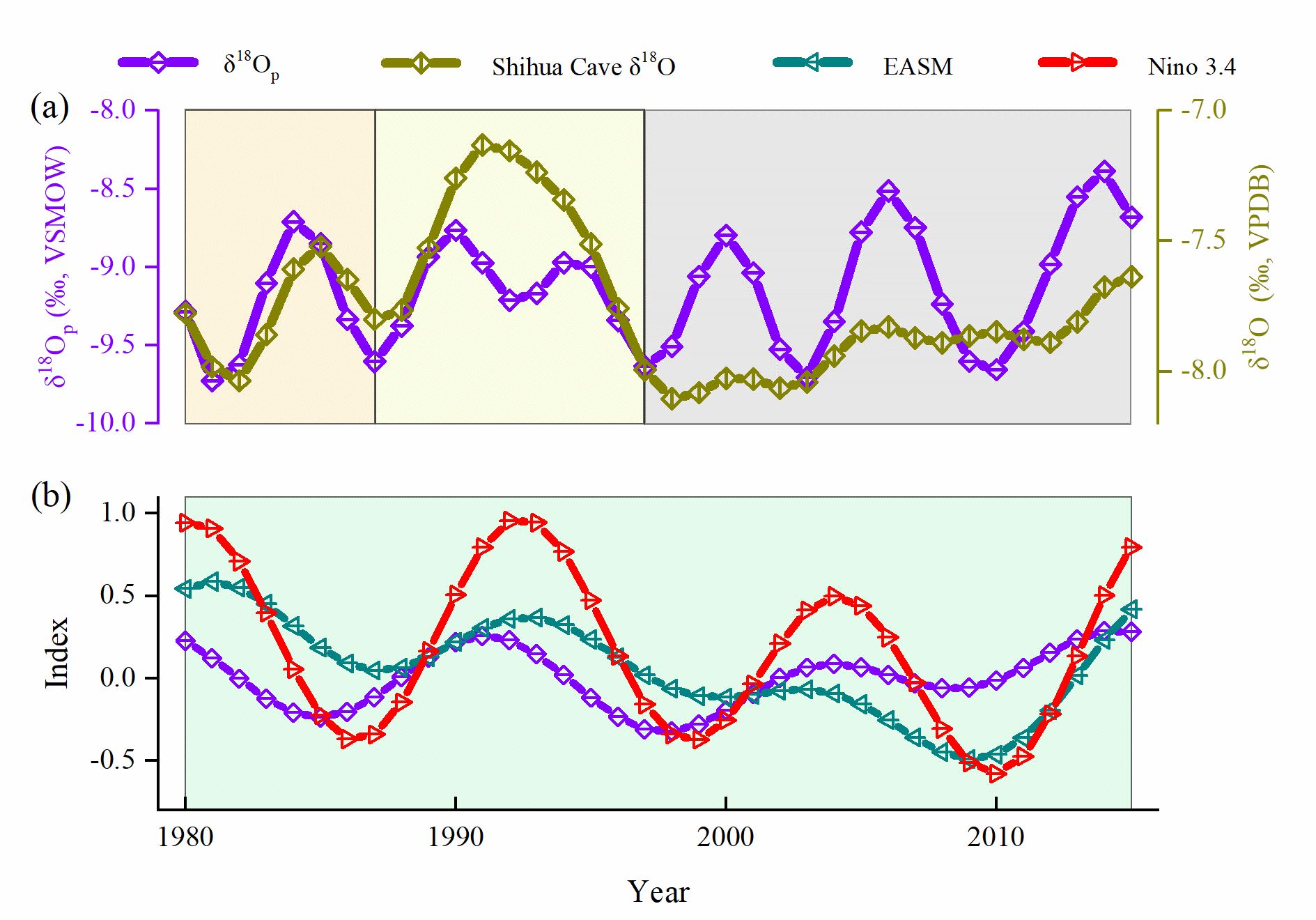 研究通过系统比较δ18Oc与δ18Op所携带的气候信息强度,揭示了本区主要水汽来源及其传输路径。结果表明,δ18Op信号主要受控于温度驱动机制,东亚夏季风与ENSO事件共同主导了区域水汽循环过程(图3)。这一发现不仅为理解中高纬多年冻土区的水汽输送过程提供了关键证据,也为区域气候变化背景下的生态响应研究奠定了基础。