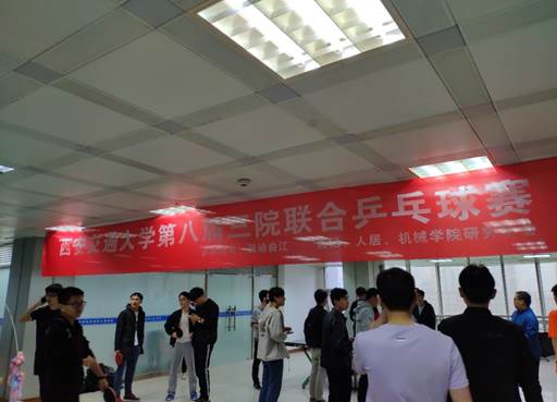 4月27日,为迎接五一劳动节和五四青年节,由人居学院、机械学院、前沿院团工委主办,人居学院、机械学院、前沿院研究生会承办的第八届研究生乒乓球赛在曲江校区西一楼人居学院活动室隆重举行。本次活动以“五四精神,乒动曲江”为主题,旨在展现交大学子蓬勃活力,激发乒(拼)搏状态,活动得到了三院学生的广泛关注和参与,共计有80余人,16支队伍参加比赛。