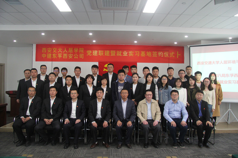 4月17日,人居学院党委书记杨鹏、副书记王新轲带领学院党员师生代表16人与学校就业创业指导中心李勇副主任,组织部党建主管刘庆新老师走进中建东孚西安分公司,代表西安交通大学人居学院与中建东孚西安分公司签署党建联建协议及学生就业实习基地协议。中建东孚人力资源部经理徐少磊,中建东孚西安公司总经理王金智,中建东孚西安公司党总支书记、总会计师刘静,中建东孚西安公司副总经理刘文德,各部门负责人及部分党员代表20余人出席了签约仪式。