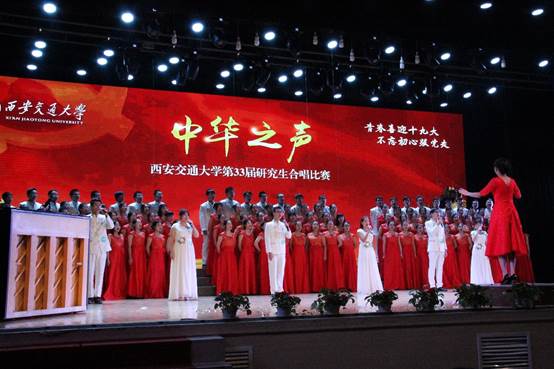 西安交通大学第33届“中华之声”研究生合唱比赛于2017年10月16日在西安交通大学兴庆校区宪梓堂落下帷幕。人居学院和公管、外国语学院强强联手,用精彩的演唱表达对母校较大和对祖国母亲的热爱之情!