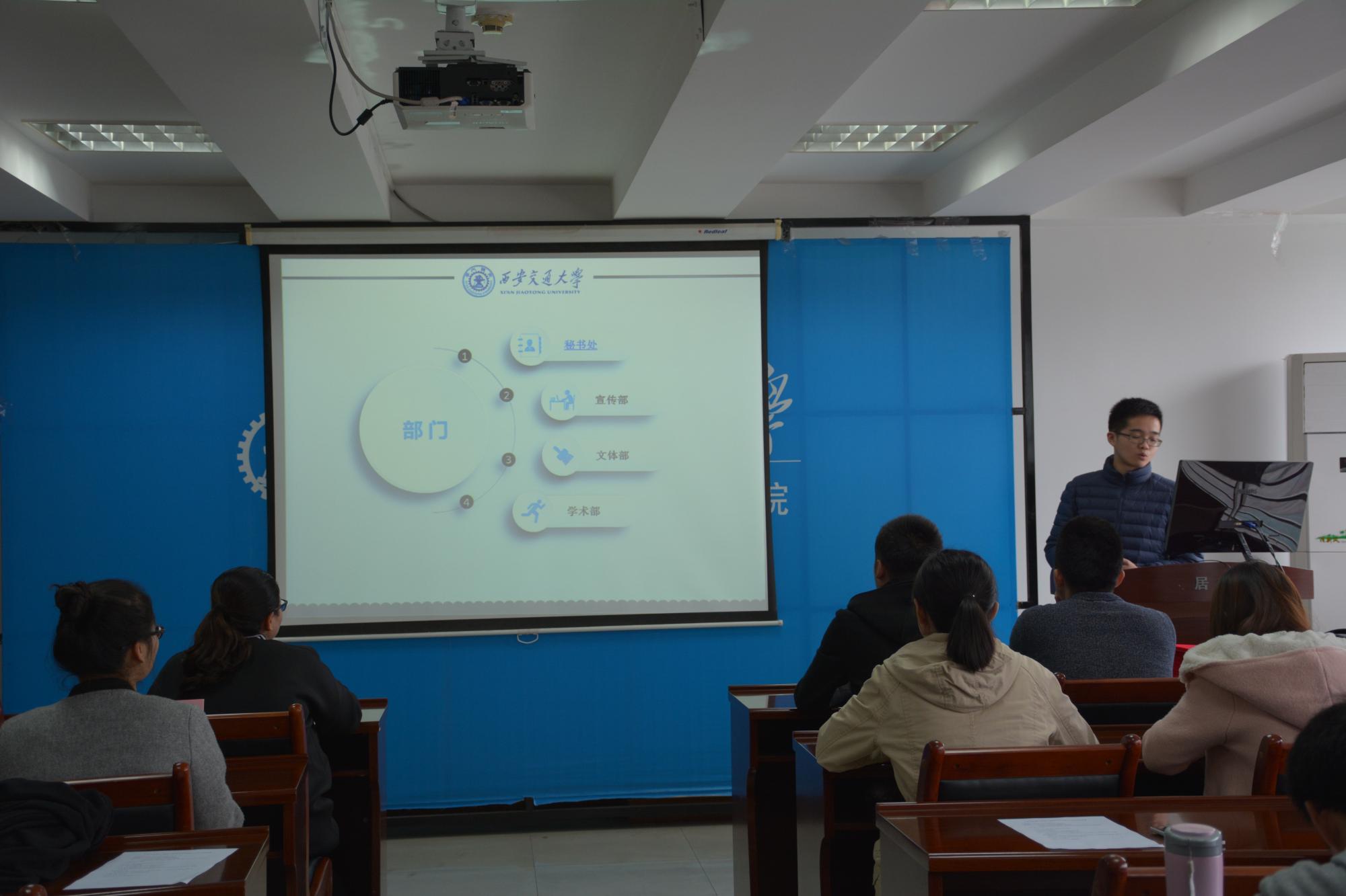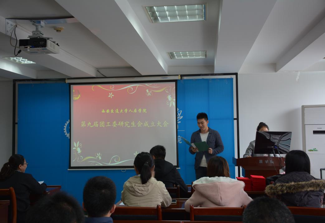 会议在国歌声中隆重开幕。第八届院研究生会副主席冯冀代表上届研会汇报工作。第八届团工委研究生会在学院党委领导下、团工委老师指导下,在新媒体宣传、组织建制、榜样引领、品牌活动创建、干部培养上取得长足进步。冯冀汇报了研究生会下属各部门创新性的特色活动,秘书处举办的“百年华诞摄影大赛”珍藏了交大120周年校庆的点滴,宣传部“人居新青年”栏目的创办等丰富了“人小居”微信公众平台内容,学术部“大师兄来了”、“就业交流会”等创建了学校和社会的纽带以及文体部的“乒动曲江”,“人居向前冲”等丰富了研究生同学的学习生活,营造了学院良好的学生文化氛围。并希望新一届研会成员“在其位,谋其职”,传承并创新。