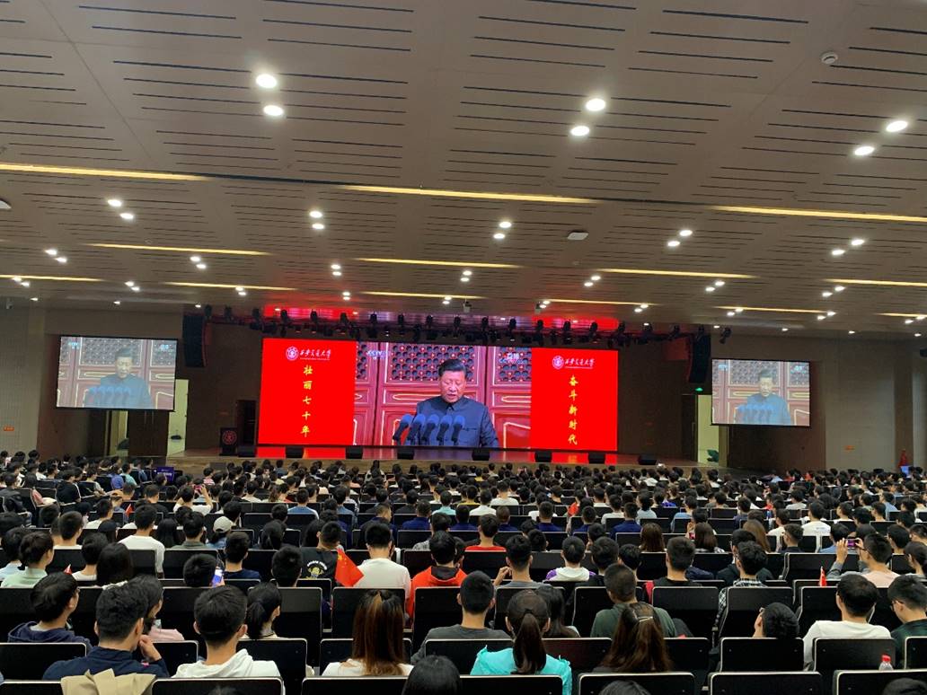 2019年10月1日是中华人民共和国成立70周年纪念日。庆祝中华人民共和国成立70周年大会在北京天安门广场隆重举行,以盛大的阅兵仪式和群众游行欢庆伟大祖国的这一盛大节日。中共中央总书记、国家主席、中央军委主席习近平发表重要讲话并检阅受阅部队。人居学院组织师生以各种形式观看直播,并展开热议。