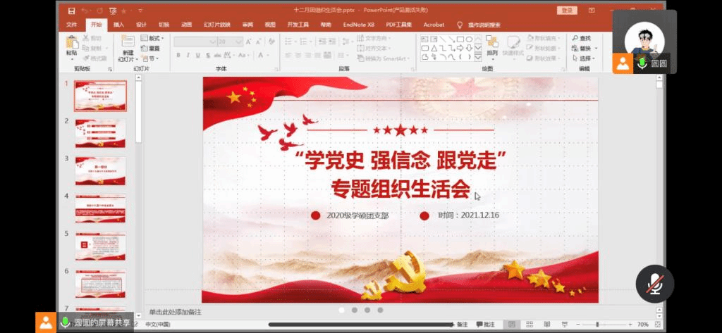 2021年12月16日,人居学院2020级学硕团支部于线上召开了以“学党史 强信念 跟党走”为主题的12月份专题组织生活会。在团支部组织委员任欢欢的带领下,支部33位团员学习了党的十九届六中全会精神,把握“一二·九”运动纪念日、国家公祭日、钱学森日、澳门回归纪念日、毛泽东诞辰等特殊时间节点的主题教育,并开展了国家宪法日的相关宣传教育。会议开始,任欢欢通过介绍中国共产党历史上三个重要决议的共通性,向大家传达了《中...