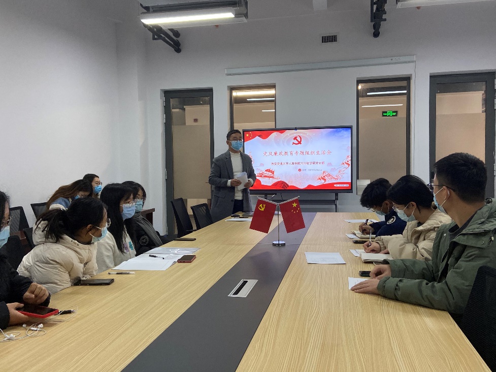 人居学院2020级学硕党支部于2021年12月23日在19-4033会议室召开了党支部十二月份组织生活会,进行党风廉政建设学习,强调当前疫情防控的重要性。参会成员全程佩戴口罩,会议由于可文同志主持。生活会第一项,于可文同志强调了党风廉政建设的重要性,并带领大家观看了廉政动漫《尺度》。动漫生动形象地讲述了政府官员的清正廉洁、公私分明的优良作风。党风廉政建设和反腐败斗争关系党和国家的生死存亡,党风、政风的好坏,事关...