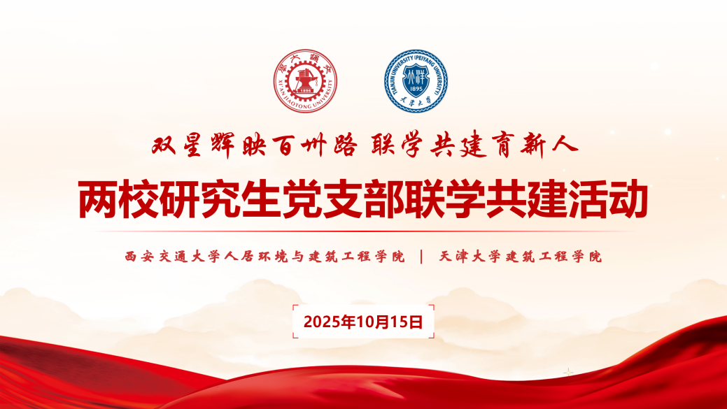 为加强校际交流、激发研究生党建活力,10月15日,人居学院联合天津大学建筑工程学院共同开展“双星辉映百卅路,联学共建育新人”研究生党支部联学共建活动。天津大学建筑工程学院党委副书记张宏垚、西安交大人居学院党委副书记王新轲出席活动,人居学院辅导员薛同宣及两校三个研究生党支部共计40余名党员参加活动,人居学院硕5198团支部、硕5199团支部全体团员以线上线下相结合形式参与学习。活动由人居学院2025级建筑与环境专...